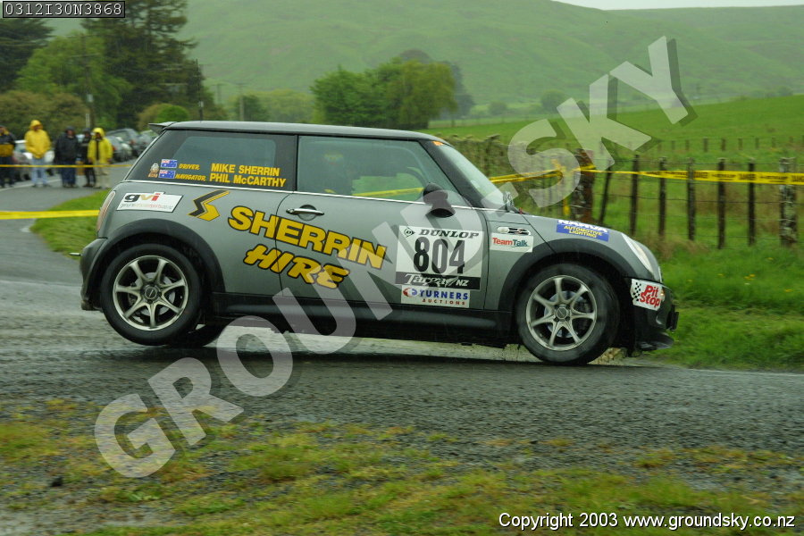 Car No: 804 Michael Sherrin and Phil McCarthy - Mini New (BMW) Cooper S - Dunlop Targa New Zealand 2003 - Special Stage 30