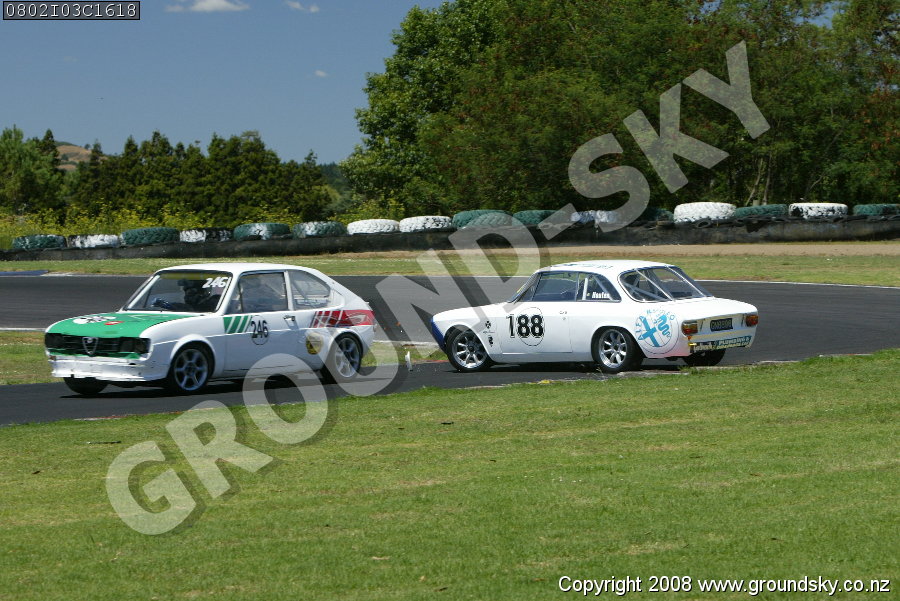 Car No: 188 Kelvin Houten - Alfa Romeo 105 GTV - Car No: 246 Anthony Olissoff - Alfa Romeo AlfaSud Ti - HRC Tasman Grand Prix - Alfa Trofeo