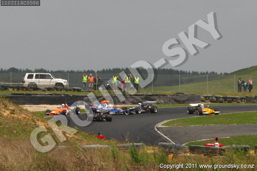 Car No: 12 Warwick Mortimer - Surtees TS5 Formula 5000 - Car No: 32 Greg Thornton - Chevron B24 Formula 5000 - Car No: 39 Kerry McIntosh - Begg FM2 Formula 5000 - Car No: 51 Peter Burson - McRae GM1 Formula 5000 - Car No: 99 Reg Cook - Lola T400 Formula 5000 - NZ Festival of Motor Racing Week 2 - Formula 5000-Formula 1