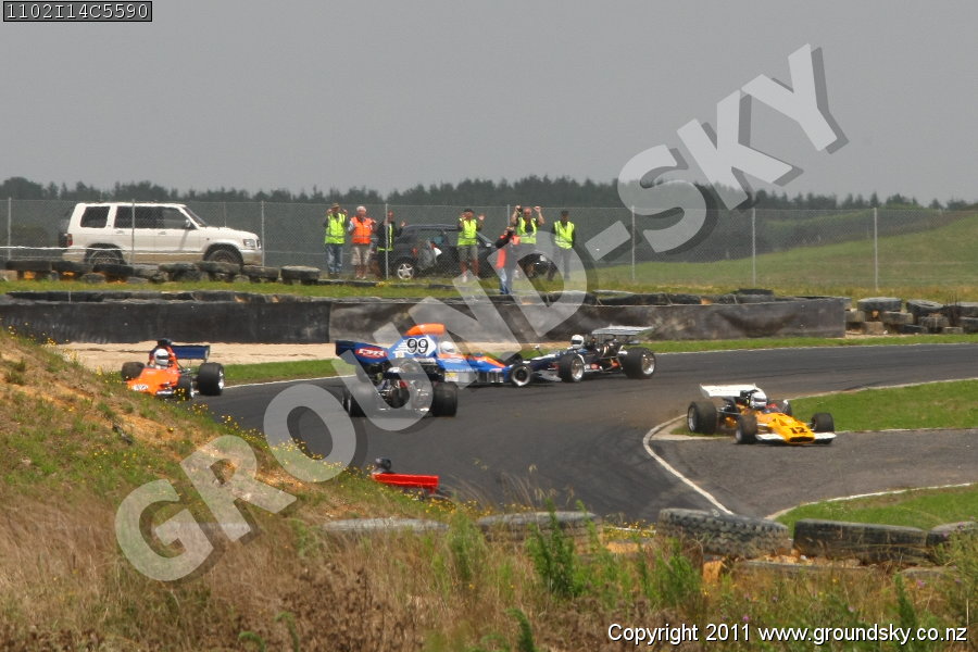 Car No: 12 Warwick Mortimer - Surtees TS5 Formula 5000 - Car No: 32 Greg Thornton - Chevron B24 Formula 5000 - Car No: 39 Kerry McIntosh - Begg FM2 Formula 5000 - Car No: 51 Peter Burson - McRae GM1 Formula 5000 - Car No: 99 Reg Cook - Lola T400 Formula 5000 - NZ Festival of Motor Racing Week 2 - Formula 5000-Formula 1