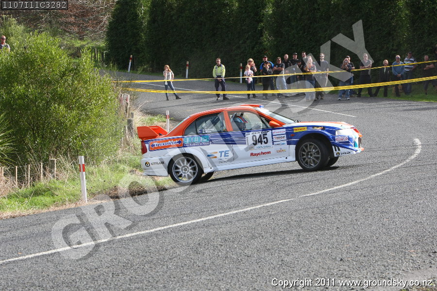 Car No: 945 Glenn Inkster and Spencer Winn - Mitsubishi Lancer Evo 6 - Targa Rotorua 2011 - Special Stage 11
