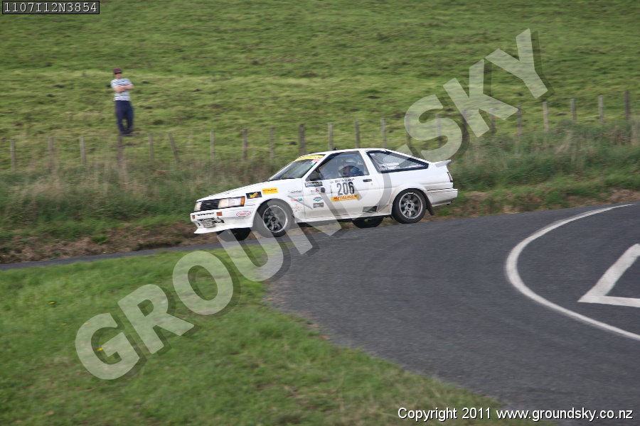 Car No: 206 Geoff Harriman and James Harriman - Toyota Corolla AE86 Levin - Targa Rotorua 2011 - Special Stage 12