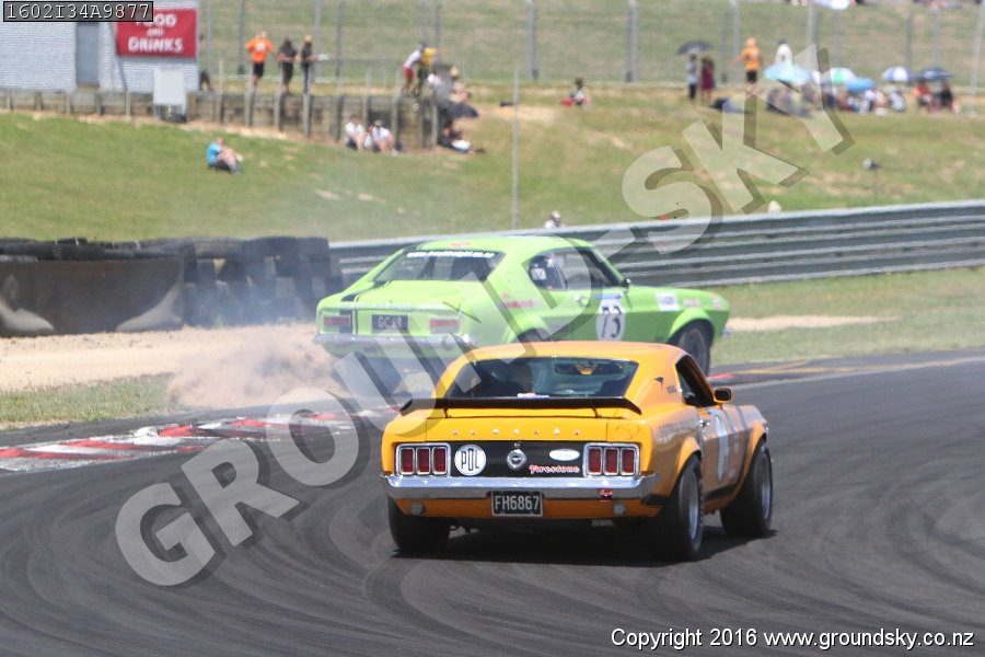 Car No: 104 Tony Mexted - Ford Mustang - Car No: 73 Mitch Mexted - Ford Capri Mk1 (69-74) - NZ Festival of Motor Racing 2016 Week 2 - Historic Muscle Cars