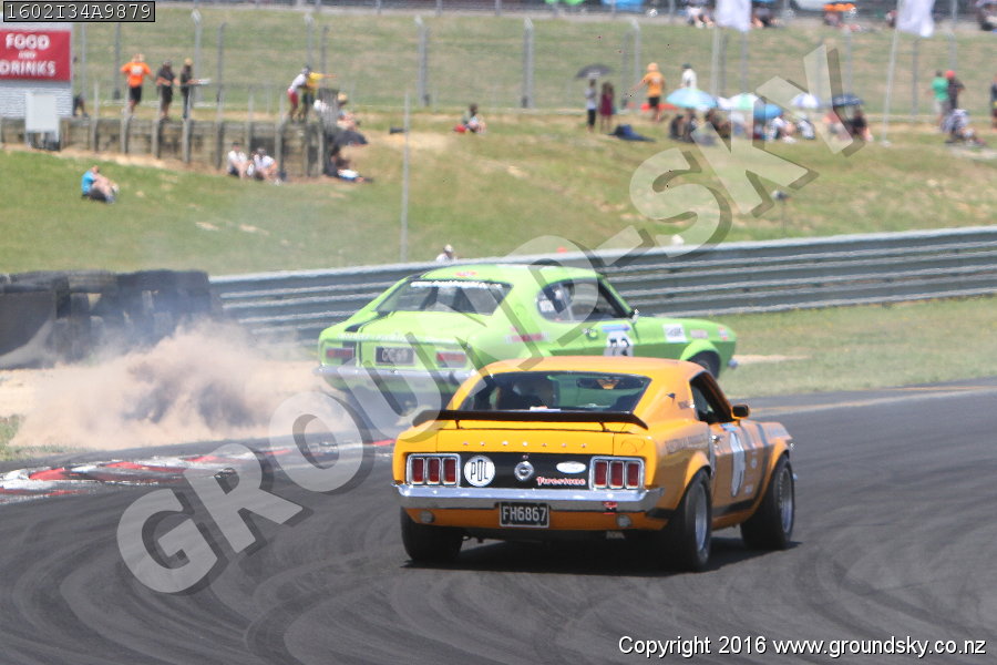 Car No: 104 Tony Mexted - Ford Mustang - Car No: 73 Mitch Mexted - Ford Capri Mk1 (69-74) - NZ Festival of Motor Racing 2016 Week 2 - Historic Muscle Cars
