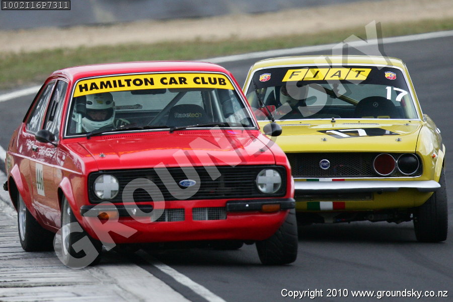 Car No: 17 Lindsey Sheard - Fiat 124 - Car No: 446 Bernard Verryt - Ford Escort Mk2 (75-80) - NZ Festival of Motor Racing Hampton Downs - Invited 1970s Saloons & GTs