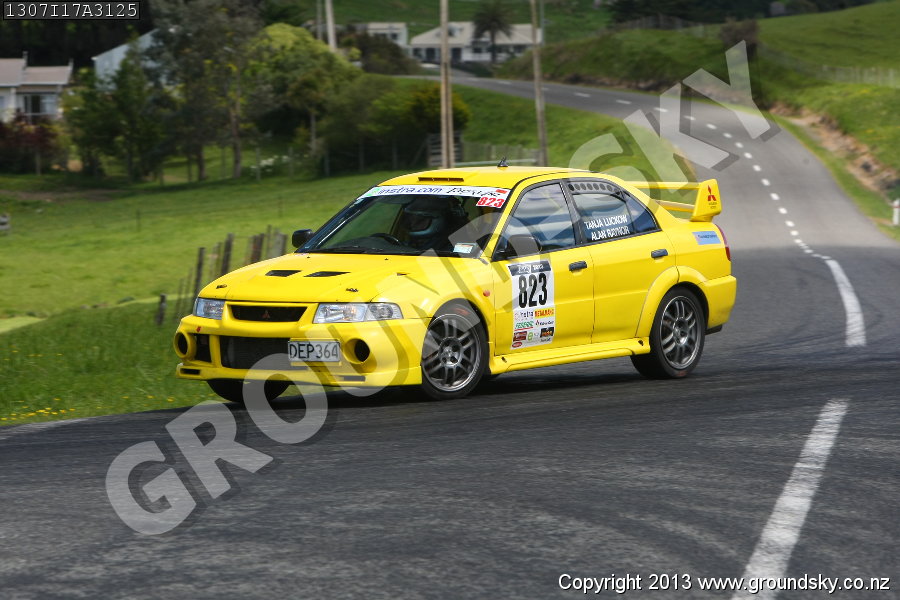 Car No: 823 Alan Raynor and Tanja Luckow - Mitsubishi Lancer Evo 6 - Targa New Zealand 2013 - Special Stage 17