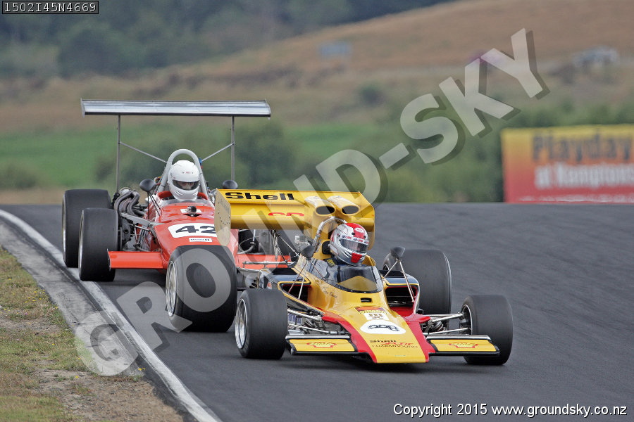 Car No: 208 Peter Brennan - Lola T330 Formula 5000 - Car No: 42 Alan Dunkley - Lola T140 Formula 5000 - NZ Festival of Motor Racing 2015 Week 2 - F5000 & F1