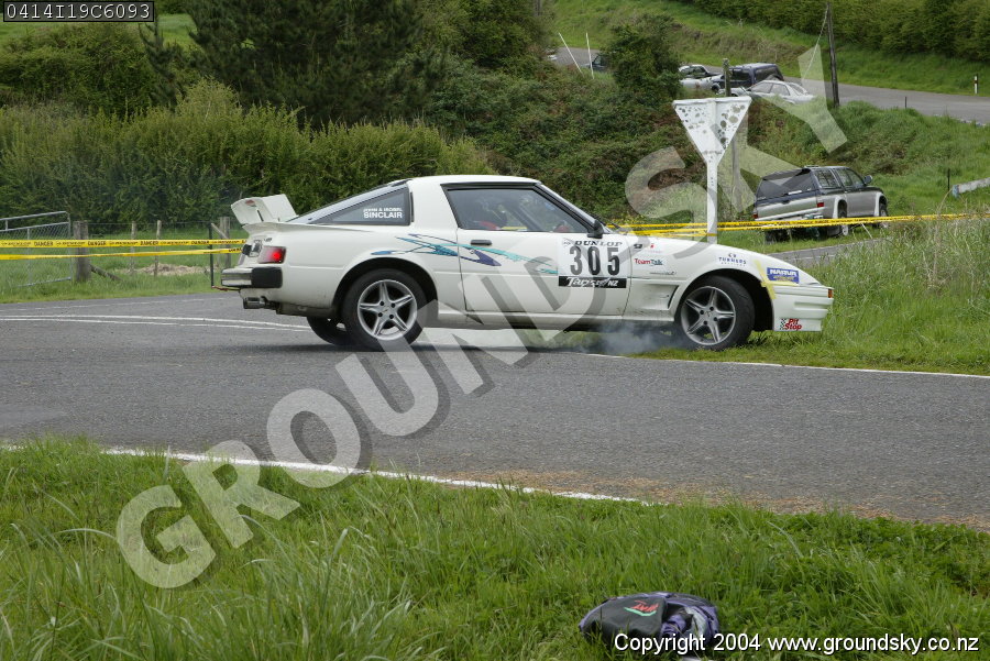 Car No: 305 John Sinclair and Isabel Sinclair - Mazda RX7 Series 1-3 (SA/FB) - Dunlop Targa New Zealand 2004 - Special Stage 19