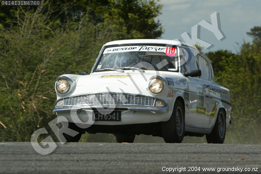 Car No: 110 Chris Minnee and Mark Sherson - Ford Anglia 105E - Dunlop Targa New Zealand 2004 - Special Stage 31