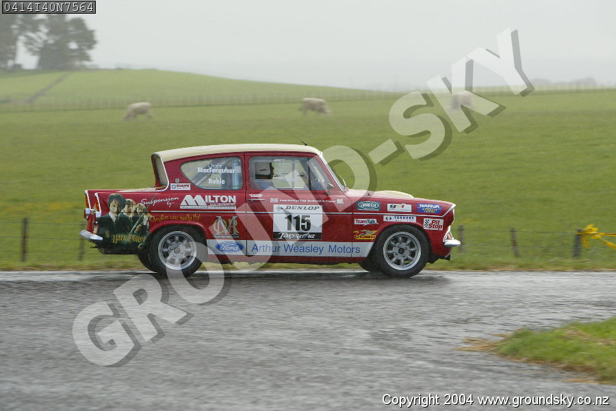 Car No: 115 Don Rubie and Charlie Macfarquhar - Ford Anglia 105E - Dunlop Targa New Zealand 2004 - Special Stage 40