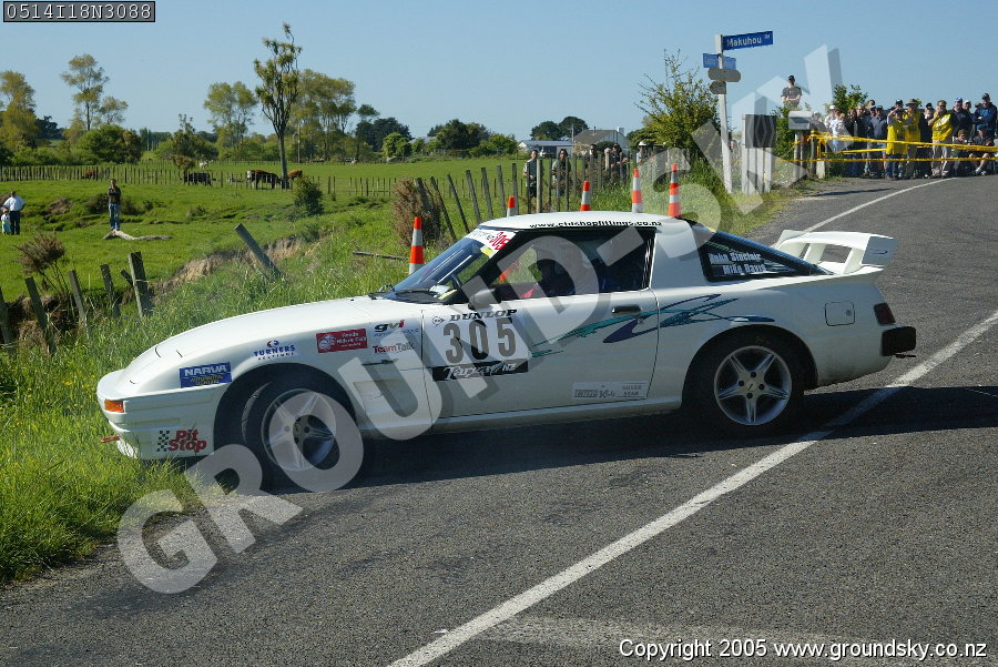 Car No: 305 John Sinclair and Michael Davis - Mazda RX7 Series 1-3 (SA/FB) - Dunlop Targa NZ 2005 - Special Stage 18