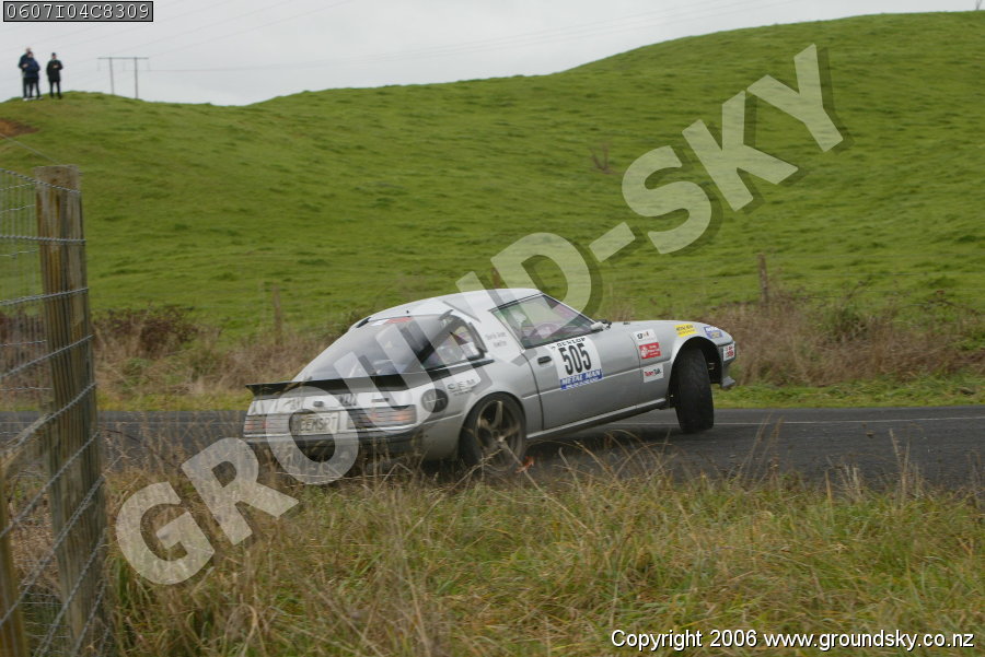 Car No: 505 Charlie Evans and Andrew Hooker - Mazda RX7 Series 1-3 (SA/FB) - Car No: 951 Joe McAndrew and Sue O'Neill - Nissan Skyline R34 GTR - Targa Rotorua 2006 - Special Stage 4