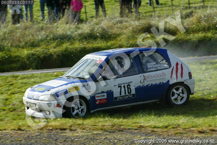 Car No: 716 Graham MacDonald and Donald Webster - Peugeot 106 Clubsport - Targa Rotorua 2006 - Special Stage 11