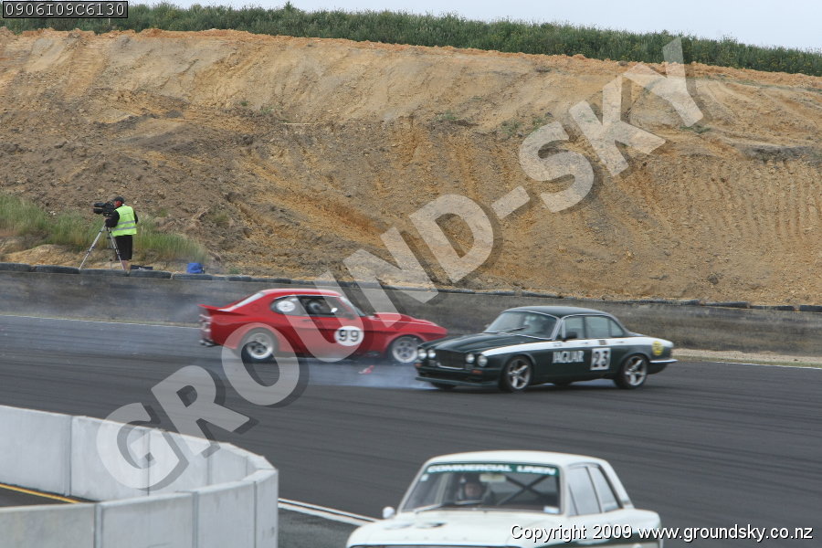 Car No: 23 Rob Moston - Jaguar XJ6 - Car No: 99 Ron Findlay - Ford Capri Perana - Monza Hampton Downs - Arrow Wheels Sports & GT Challenge