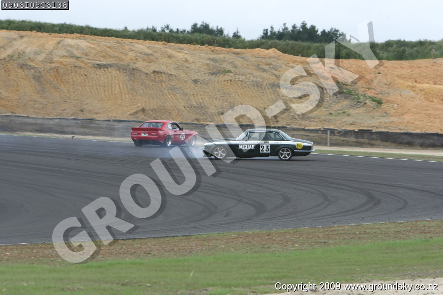 Car No: 23 Rob Moston - Jaguar XJ6 - Car No: 99 Ron Findlay - Ford Capri Perana - Monza Hampton Downs - Arrow Wheels Sports & GT Challenge