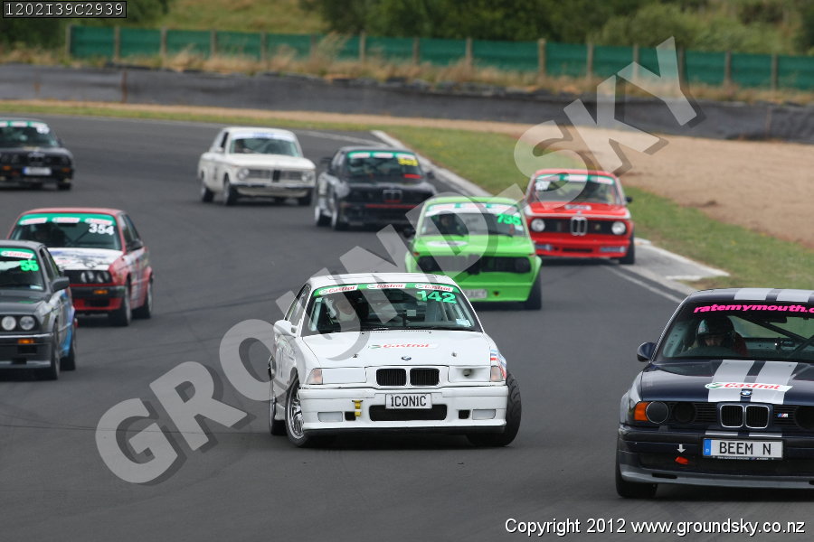 Car No: 107 Grant Clegg - BMW 2002 Ti Alpina - Car No: 142 Graeme Fraser - BMW M3 E36 - Car No: 755 Peter Bromley - BMW 2002 Ti - NZ Festival of Motor Racing Week 2 - BMW Open Class