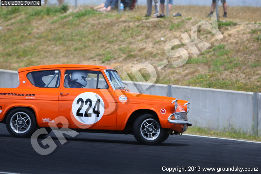 Car No: 224 Dennis Dowling - Ford Anglia 105E - NZ Festival of Motor Racing Week2 - Historic Muscle Cars & Pre 78 Saloons