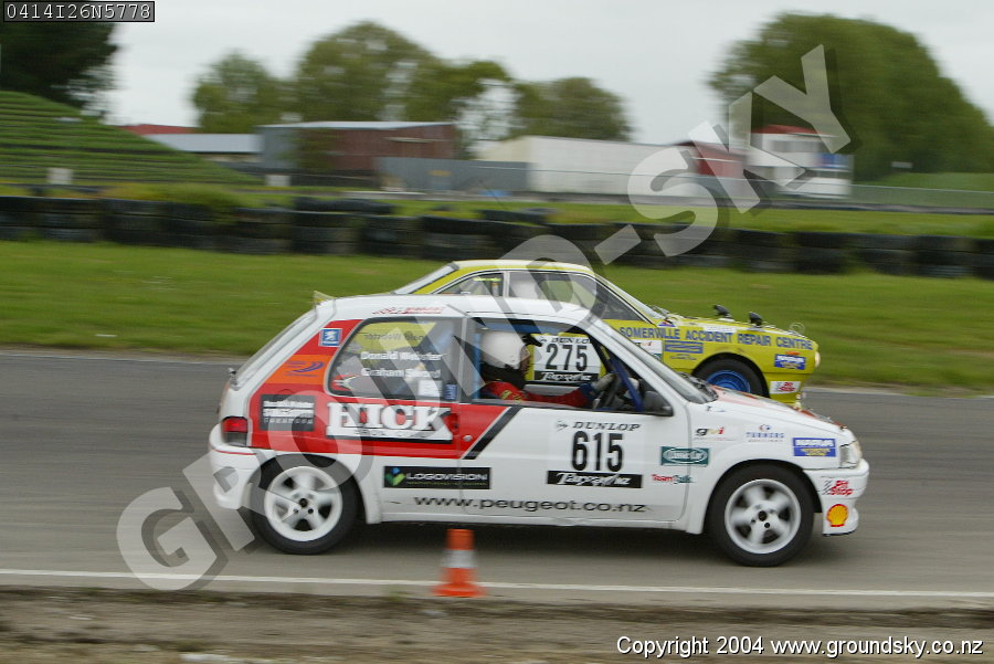 Car No: 275 Ray Osterberg and Charles Hona - Lancia Beta Coupe - Car No: 615 Donald Webster and Graham Sword - Peugeot 106 Clubsport - Dunlop Targa New Zealand 2004 - Special Stage 26