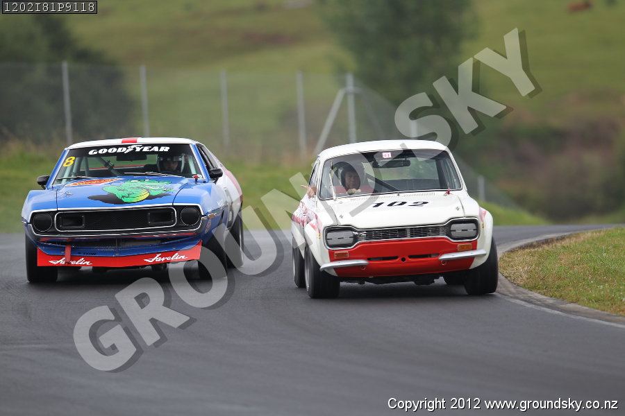 Car No: 102 Rayden Smith - Ford Escort Mk1 Twin Cam - Car No: 8 Craig Stacey - AMC Javelin AMX - NZ Festival of Motor Racing Week 2 - Pre-1978 Saloons & GTs Practice