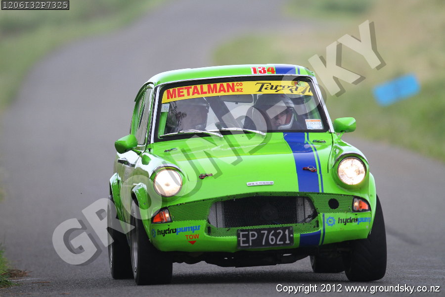 Car No: 134 Patrick Dillon and Malcolm Ward - Ford Anglia - Targa New Zealand 2012 - Special Stage 32