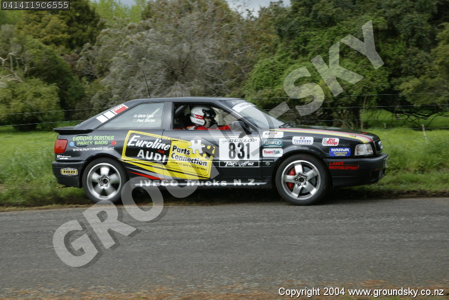Car No: 831 Chris Lane and Paul Sexton - Audi Quattro S2 - Dunlop Targa New Zealand 2004 - Special Stage 19