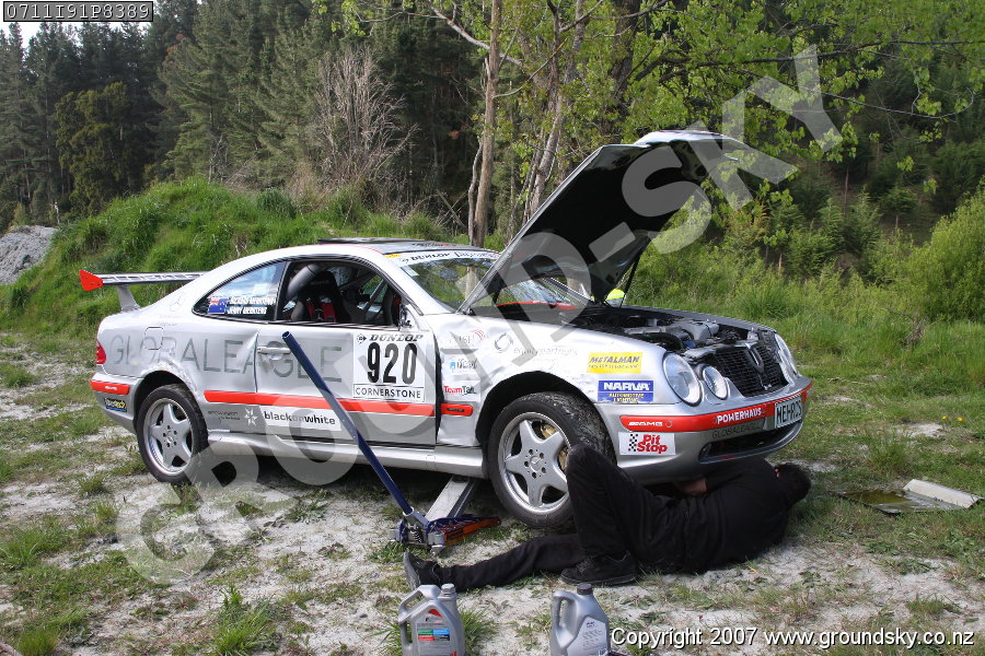 Car No: 920 Richard Mehrtens and Jenny Mehrtens - Mercedes Benz CLK55 AMG - Dunlop Targa NZ 2007 - Hunterville Servicing