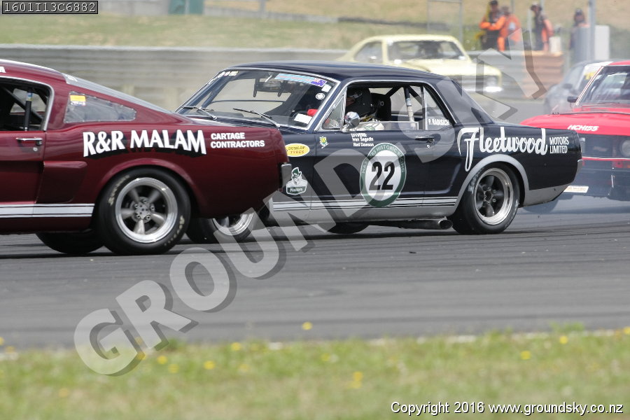 Car No: 22 Neil Tolich - Ford Mustang - Car No: 57 Richard Malam - Ford Mustang - NZ Festival of Motor Racing 2016 Week 1 - Historic Muscle Car