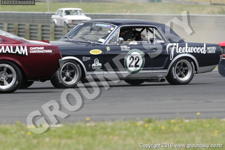Car No: 22 Neil Tolich - Ford Mustang - Car No: 57 Richard Malam - Ford Mustang - NZ Festival of Motor Racing 2016 Week 1 - Historic Muscle Car