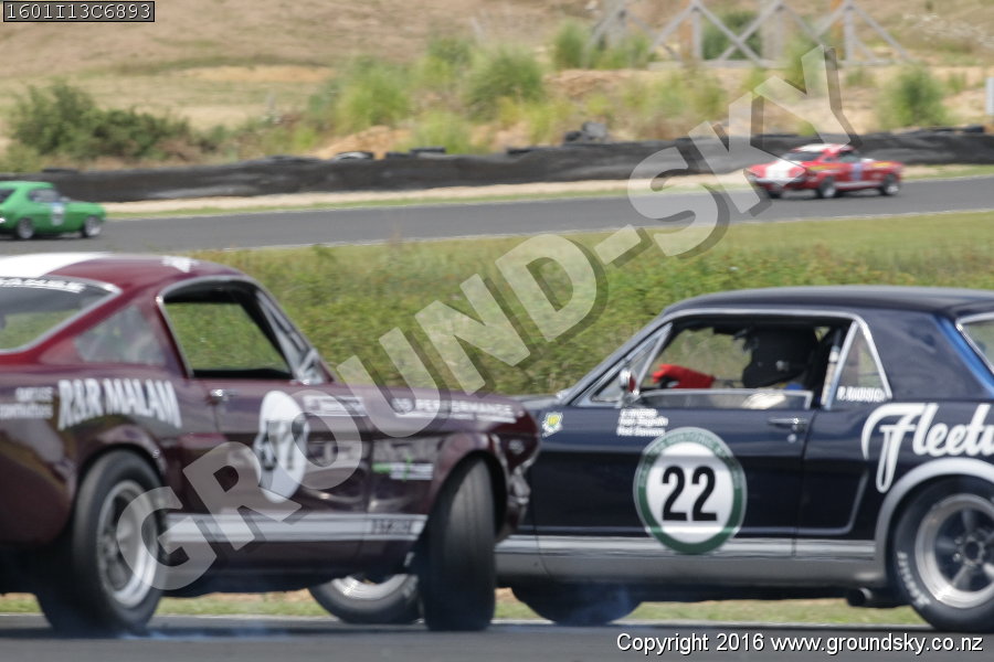 Car No: 22 Neil Tolich - Ford Mustang - Car No: 57 Richard Malam - Ford Mustang - NZ Festival of Motor Racing 2016 Week 1 - Historic Muscle Car