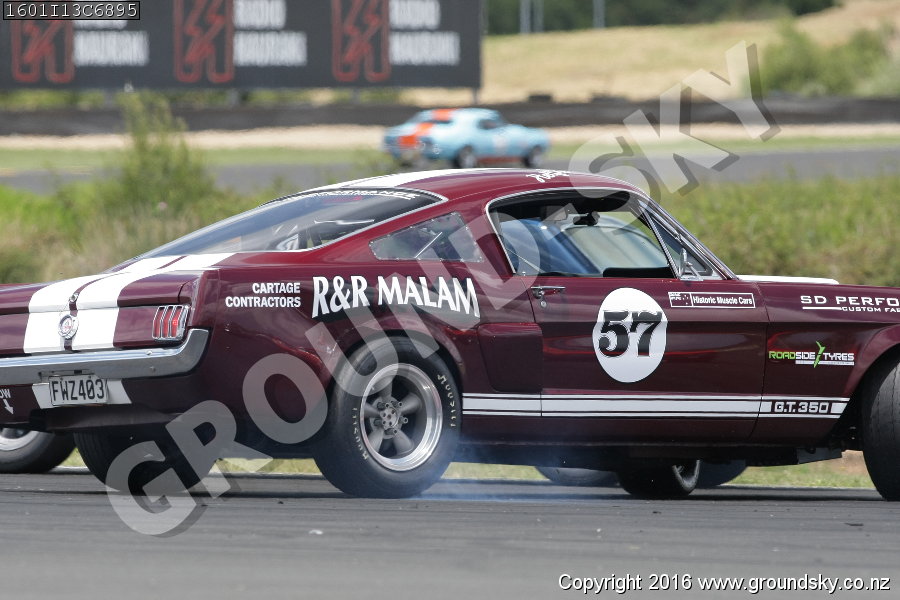 Car No: 22 Neil Tolich - Ford Mustang - Car No: 57 Richard Malam - Ford Mustang - NZ Festival of Motor Racing 2016 Week 1 - Historic Muscle Car
