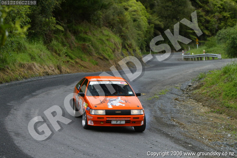 Car No: 483 Duane Joubert and Sue Prance - Toyota Sprinter AE83 - Dunlop Targa New Zealand 2006 - Special Stage 6
