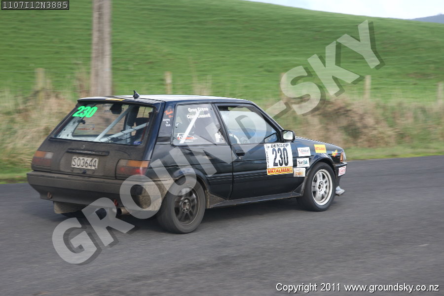 Car No: 230 Greg Crene and Craig Connell - Toyota Corolla FX GT - Targa Rotorua 2011 - Special Stage 12